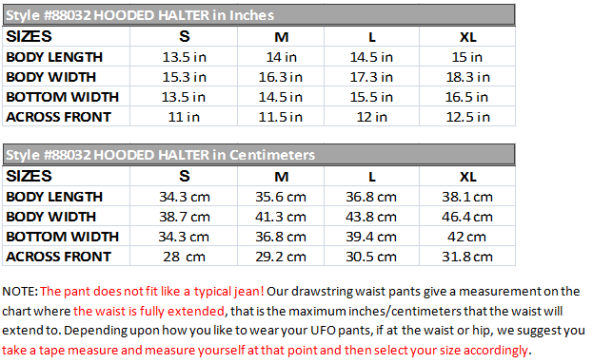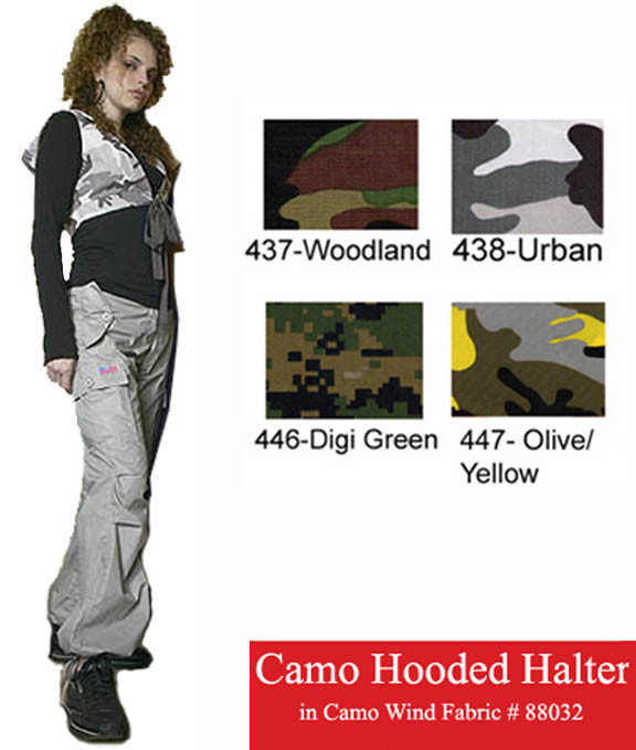 Add some flair to your dance wear or street wear wardrobe with the UFO Camo Hooded Halter! This halter top features a cropped halter with a hood, and twill tape ties you can use to draw the halter as fitted or as loose as you would like. The twill tape ties match the UFO signature straps found in the cargo pockets of most UFO pant styles. Made from 65% Poly and 35% Cotton. Machine washable.