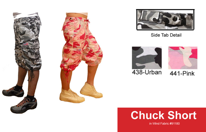 Step out in cool military fashion with the UFO Chuck Short! This Unisex Short features a military camo print, self fabric tab at the waist with brass d-ring and brass snap closure for an added fit, a centered seam detail down the front of the leg leads to shirring for added range of motion, a drawstring waist, quarter top pockets, pleated side cargo pockets, rear pocket with velcro closure, and drawstring bottom. Cool and comfortable, the UFO Chuck Short would make a great addition to any dance wear, fitness wear, or street wear wardrobe. Made from 65% Poly and 35% Cotton, these pants are 100% safe to throw into the wash!