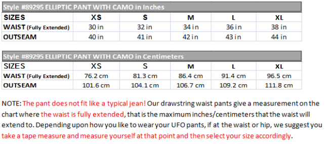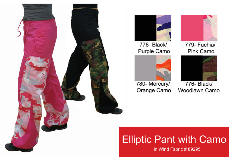 UFO Elliptic Pant with Camo is the perfect combination of tough and feminine, which is exactly what every dance and fitness loving girl needs! This pant fits off the high hip to waist with a slimmer fit. This pant features a drawstring waist, two top flap pockets with single button closure, contrasting camouflage detail starting at the side cargo pockets reaching down to the hem in an elliptic shaped inset, signature UFO tapes, knee pleats for a wide range of motion, back darts for a slimmer fit, and a right rear button closure pocket, and drawstrings at bottom of the pant allow you to adjust the length. Made from 65% Poly and 35% Cotton. Machine washable.