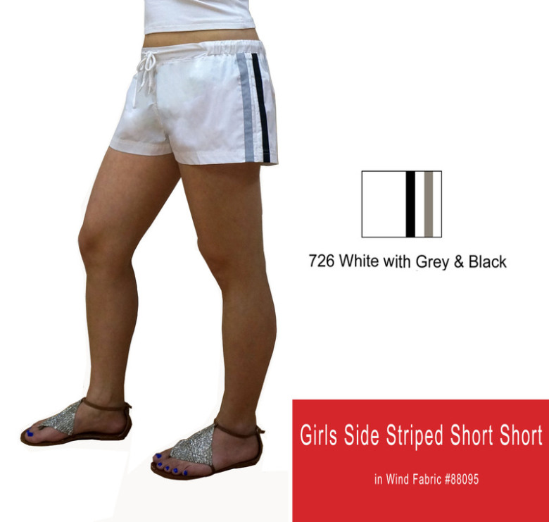 Who likes short shorts? We wear short shorts, and you can too with the UFO Girls Side Striped Short-Short! This short features an elastic detail on both sides of the waistband, along with a drawstring tie that allows you to place this style higher or lower on your hip, as you dare! The fun grey and black side stripe details make this a sporty and cute addition to your dance wear, fitness wear or street wear wardrobe! Made from 65% Poly, 35% Cotton. Machine washable.