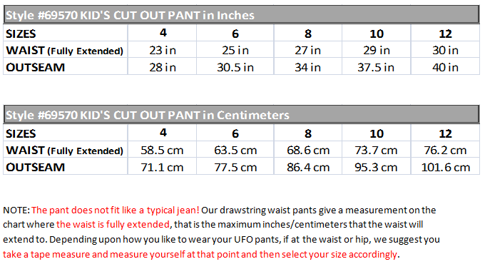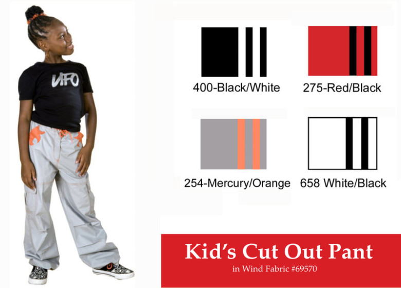 Kids will look awesome in the UFO Kids Cut Out Pant with contrast flame detail at the pockets! This pant features a contrasting cut out flame detail around the quarter top pockets, drawstring and elastic waist, cross seam details at the thigh,double button side cargo pockets with an inverted pleat and gusset hole openings for your UFO tapes to peep through, pleats around knees to give your child the mobility for both dance and play, a rear right pocket with button closure, and drawstring bottoms. Wear these pants up or down! Adjustable drawstrings at the bottom are perfect for any fickle fashion preferences! Made from 65% Poly and 35% Cotton, these pants were cut out to be worn! Best of all, these pants are easy to wash, and easier to wear!