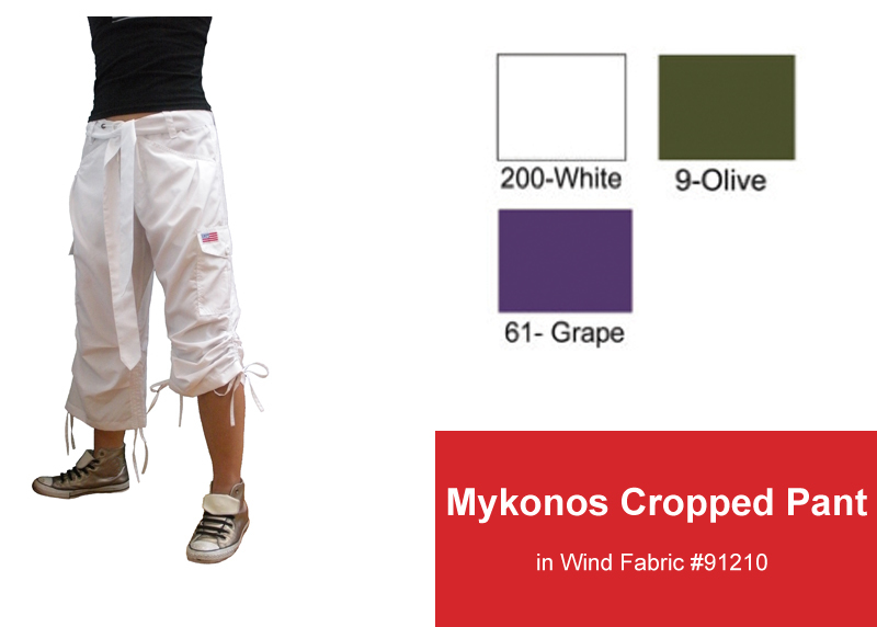 It's time to step up your style game with a fun twist to our cropped pants. The UFO Mykonos Cropped Pant comes with a detachable self-tie fabric belt. Whether you're wearing them for a dance performance, to a dance class, on the street or at an EDM show, you'll stand out from the crowd. This Unisex Pant features an adjustable drawstring waist, two quarter top pockets with inverted pleated detail, side pleated cargo pockets with button closure, a rear pocket with velcro closure, and adjustable side strings allow you to shirr the leg of your cropped pant to become a short. This pant is constructed from 65% Poly and 35% Cotton. Machine washable.