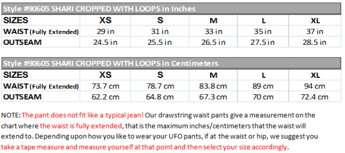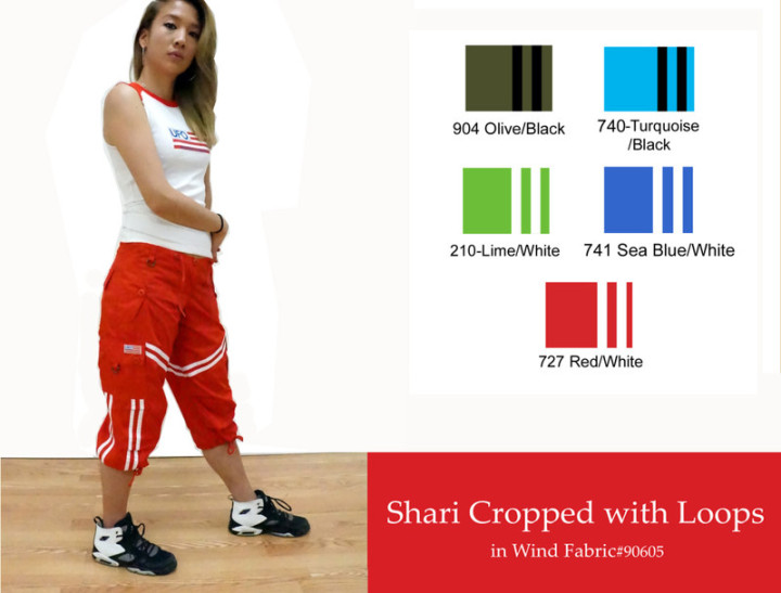 One of our cropped faves, you can stylize by the way you accessorize! The UFO Shari Cropped Pant comes with loops you can attach your own trinkets, key chains, laces, ribbons, and anything you can think of! This pant has the classic features of our Cropped Drawstring Pant, which include our famous Wind Fabric, fits at the mid to high hip, drawstring at the waist, top stylized pockets with button closures, double button side cargo pockets with gussets for signature twill tapes, one back pocket with a single button flap closure, back darts for a slimmer look, adjustable drawstring bottom, and the girly fit you love with sporty contrasting stripes at the front and back of legs, and contrasting angle stripes at the thighs so you don't have to compromise between style and comfort with your dance, fitness, EDM and street wear! This pant is made from 65% Poly, 35% Cotton and is machine washable!