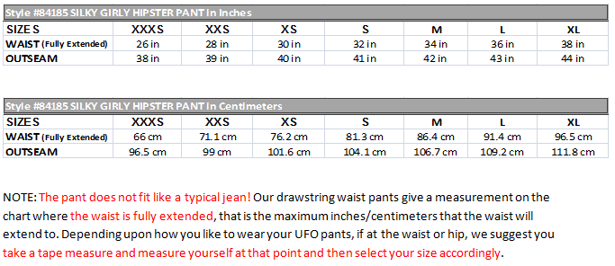 Amongst our best sellers, the UFO Hipster Pant is one of our basic girly cuts. This style accentuates the girly silhouette with a fit at the higher hip to waist and a slim fit that hugs your hips and is comfortable enough to be a staple in any dance wear, fitness wear, EDM wear, or street wear closet. This pant features a drawstring waist, side cargo pockets, our UFO classic twill tapes at the side cargo pockets, a right rear pocket, and drawstrings bottoms so you can adjust the length of the pant with. Made from soft 100% Poly, these pants take the meaning of comfort to the next level!